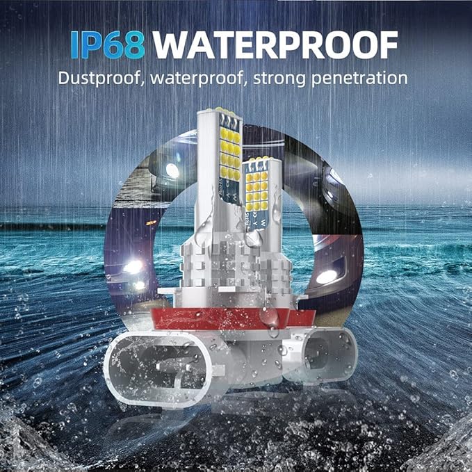 【IP65防水レベルと取付簡単】国際標準IP65防水レベルで、雨や雪の日も心配なし。安全運転を確保し、運転者にもっと安全です。H8 / H9 / H11 / H16(国産車)の純正球と交換して、純正フォグランプとほぼ同じサイズによって、加工する必要がなくて、差し込むだけで使用可能です。複雑なコネクタや余計な配線等は一切無し、初心者でも簡単に取り付け。対応場所:フォグランプ。(ご注意:ヘッドライトに使用しないでください。)