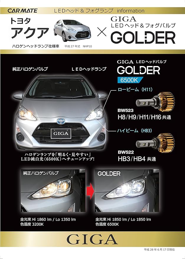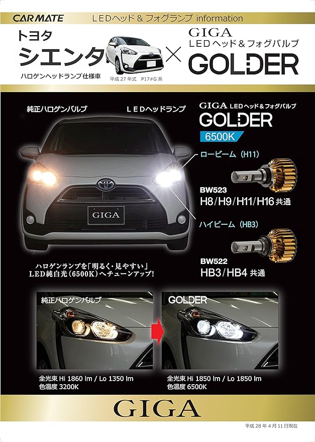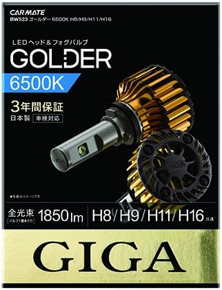 カーメイト 車用 ヘッドライト フォグライト LED GIGA ゴールダー H8/H9/H11/H16 共通 6500K 1850lm 日本製 車検対応 BW523