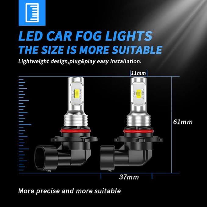 【ハロゲンより300%明るい】6500K高輝度LEDフォグランプは夜間走行時に明るく照らし、前方の道路をより広くクリアに見渡せます。 明るさはハロゲンライトよりも明るく、様々な複雑な天候で動作することができ、夜間運転の安全性を向上させます。