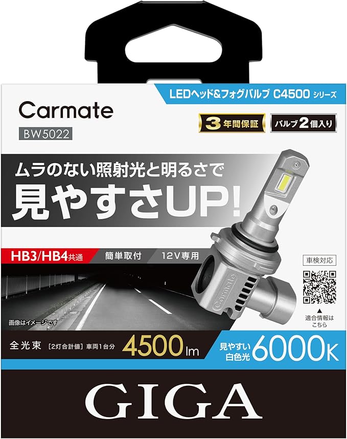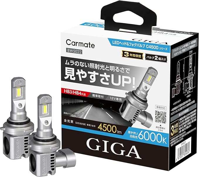 カーメイト(Carmate) GIGA 車用 LEDヘッドライトバルブ&フォグバルブ 【日本国内設計】 6000K HB3/HB4 /4500lm ハイブリッド車 アイドリングストップ車対応 【車検対応】C4500シリーズ BW5022