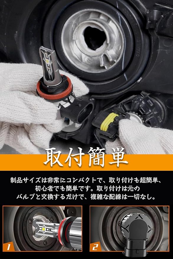 IP68防水レベルと取付簡単:国際標準IP68防水レベルで、雨や雪の日も心配なし。安全運転を確保し、運転者にもっと安全です。無極性タイプ、一体型の設計で体積が小さく、複雑なコネクタや配線一切無し。取り付けは純正バルブを取り外し、本製品を付けるだけ超簡単です。