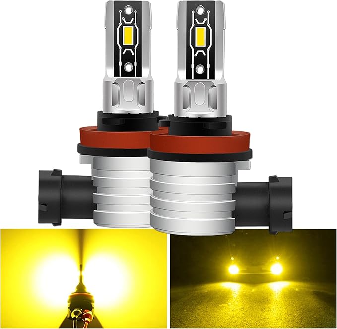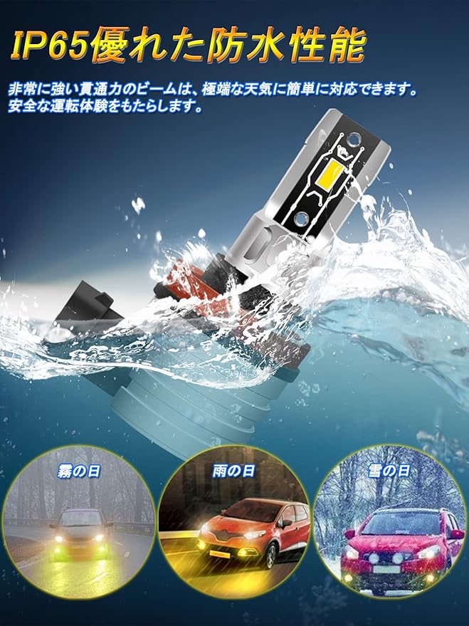 【視認性の高いイエロー光】H11 LED フォグランプ色温度3000kイエロー、従来の純正ハロゲンランプよりも貫通力が強く、雨や霧の中でも見やすくなっています!純正バルブと比較して、最大で約3倍の明るさUPが可能になります。光量不足で夜間の運転に不安を感じている人にはもってこいだ。(ご注意:フォグランプしか使えません、ヘッドライトには使えないでください。)