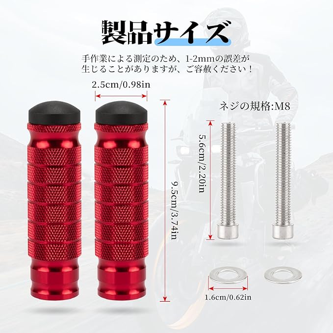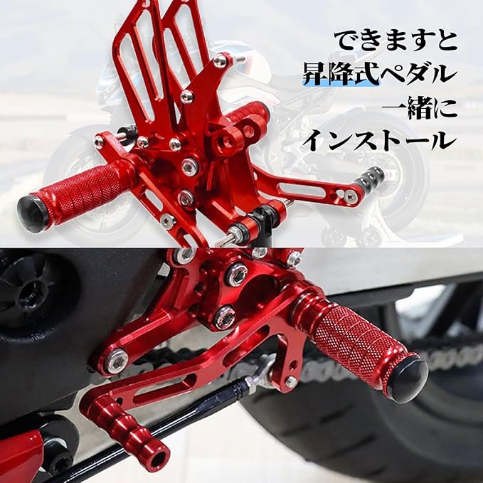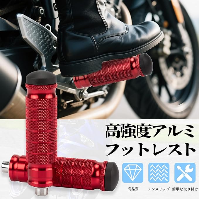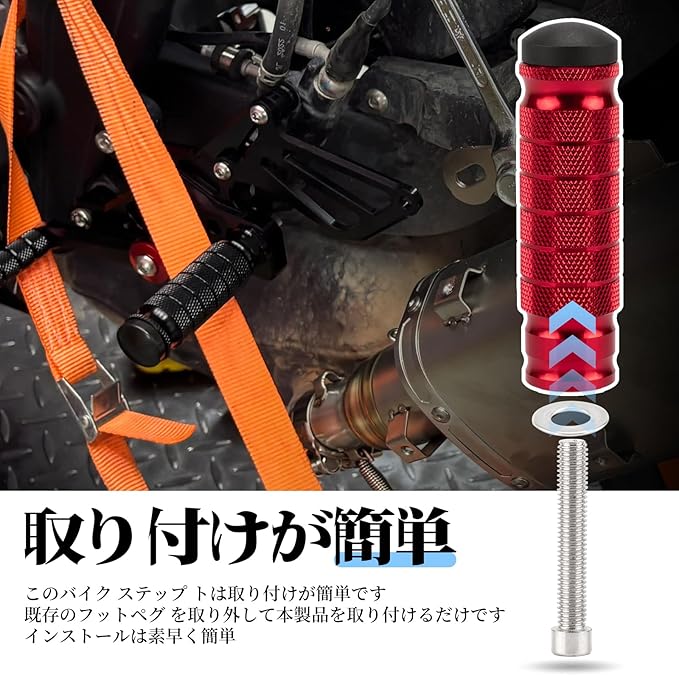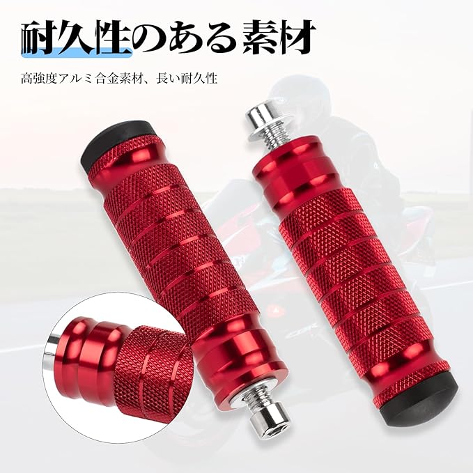 バイク ステップ フットペグ ステップバー タンデムステップ ペダル ローレットアルミ合金製 高強度 高耐久 フロントペダル リアフットレストM8ボルト 左右セット汎用 (赤)