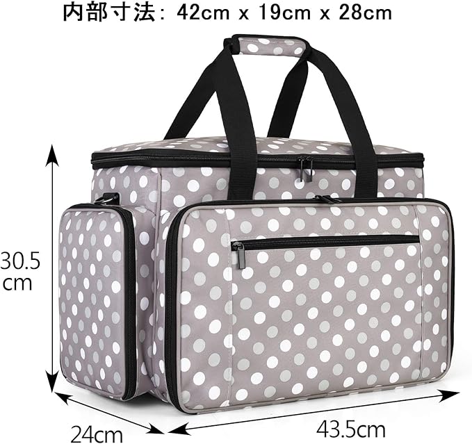 Luxja ミシンケース ハードボード付き 裁縫道具もまとめて収納 クッション性 (グレー ドット)