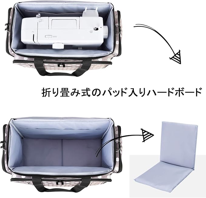 大切なミシンとアクセサリの収納、保護、持ち運びなどに、家庭の日常使用にも適しているキャリングケースです。使わないとき、折り畳んでコンパクトに収納することができます。