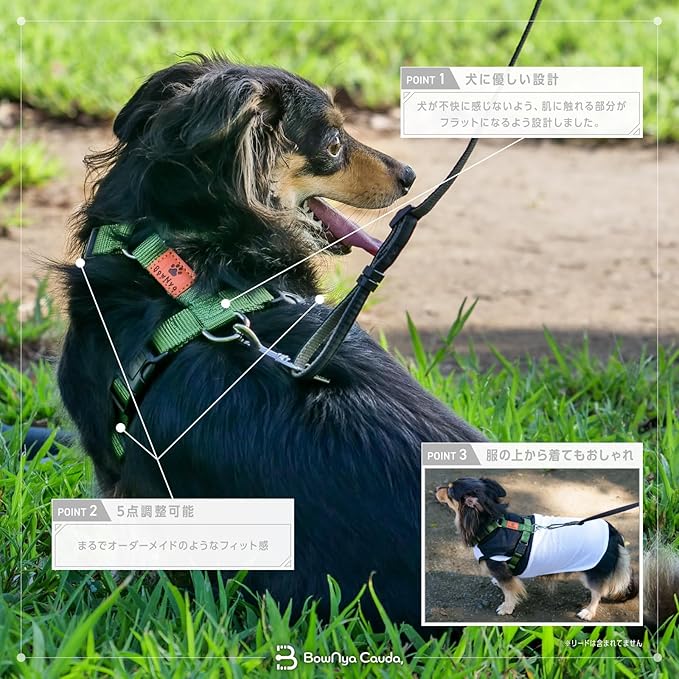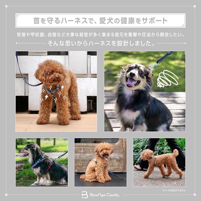 【獣医師推奨】BowNya Cauda, 犬 ハーネス 気管虚脱 アクティブハーネス 簡単装着 5ヶ所調整可能 マルチカラー Lサイズ