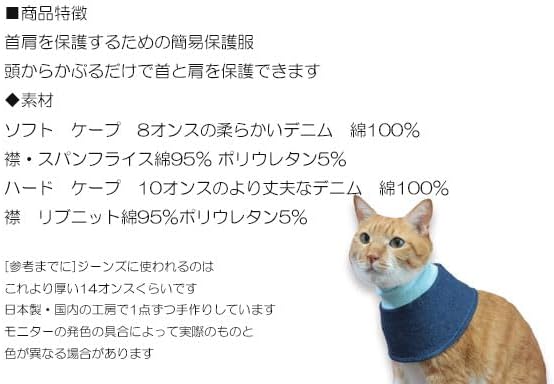 掻き壊してしまう猫ちゃんのためにケープにデニムを採用、首回りをしっかり保護します