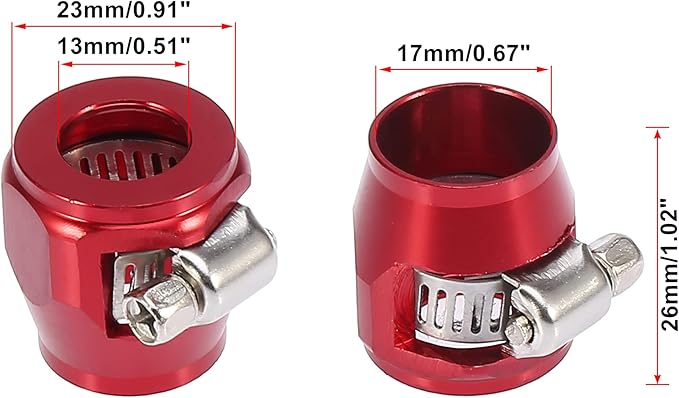 X AUTOHAUX AN8カーホースフィニッシャークランプ エンドフィニッシャークランプ ウォーターラインクリップ 六角 ラバー ねじバンドアダプター継手付き 2個入り 赤