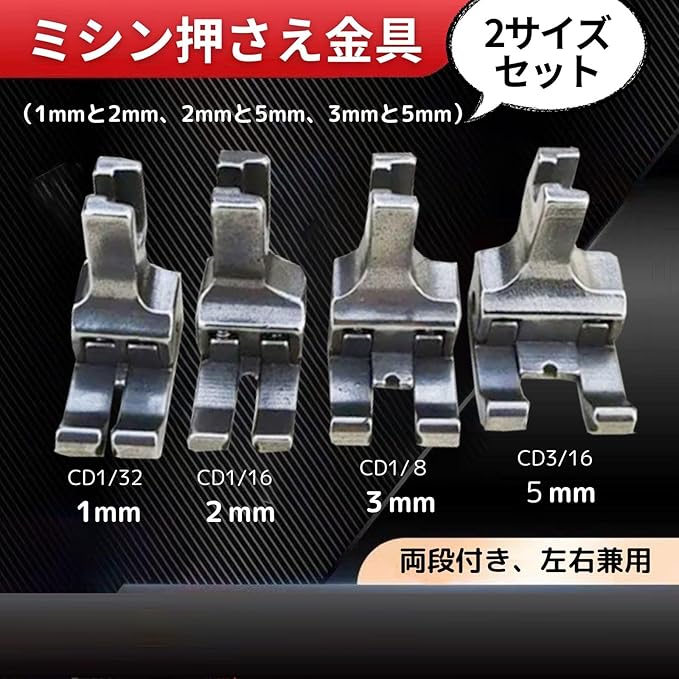 簡単操作で美しい仕上がりを実現!段付き押さえ金具2サイズセット、3パターン (1mmと2mm)(2mmと5mm)(3mmと5mm)
