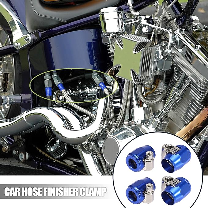 X AUTOHAUX AN4カーホースフィニッシャークランプ カーホースフィニッシャー ホースクランプフィニッシャー 柔軟のゴム製 ねじバンドアダプタ継手付き 石油燃料水管用 4個入り 青