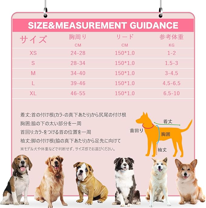 PET ペット用ハーネス&リードセット 犬 ハーネス 犬のリード ドッグウエア 胴輪 調節可能 お散歩 お外出 着脱簡単 小型犬 中型犬 大型犬(ピンク S)
