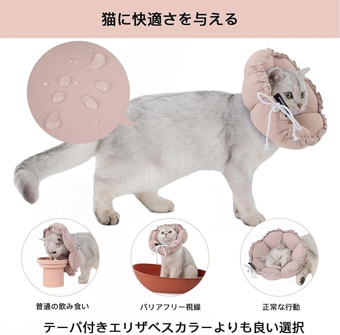 エリザベスカラー 猫用 犬用 ソフト 防水 軽量 手術後傷口保護 舐め防止 引っ搔き防止 視界や飲食を妨げない 調整可能なアウターリング深さ設計 可愛いピンクの花の形 Mサイズ