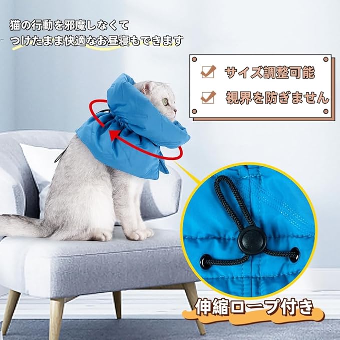 [VNGOLERRY]エリザベスカラー 猫 犬 猫用 小型犬 ソフト 軽量 快適 首ガード サイズ調整可能 柔らかい 防寒 介護用 皮膚病 傷口保護 傷舐め防止 引っ掻き防止 避妊手術 去勢手術 (ライトブルー)