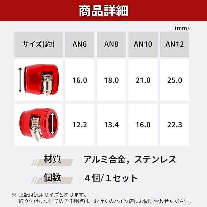 エコノフィッティング ホースエンド フィニッシャー クランプ スクリューバンド ラジエーター ホースバンド ステンレスメッシュ オイル漏れ防止 アルミ合金 (赤, AN6)
