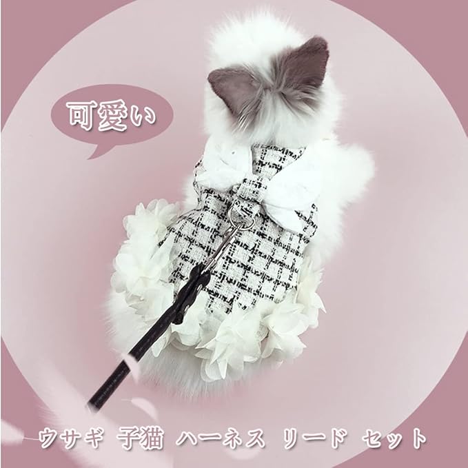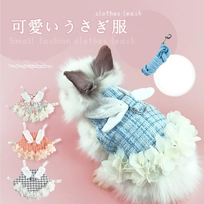 【美しく優雅のデザイン】かわいもおしゃれお洋服のように着せられるお洒落なデザインです。レースの花で飾られたウサギのハーネスは、人々に若々しい活力の感覚を与えます。ペットたちは春の花のように着飾っている。