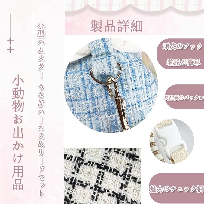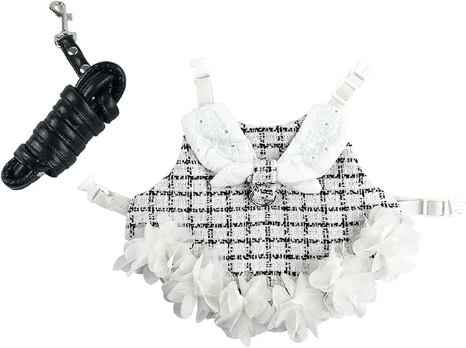 ウサギ 子猫 ハーネス リード セット姫風モルモット 猫 ハムスター 可愛い ドレスうさぎ 服 小型 ハーネス お出かけ 着ぐるみ 簡単着脱 迷子防止 牽引ロープ 記念撮影 小動物可愛いうさぎ服 美しく優雅 小型ハムスター うさぎハーネス&リードセット 記念撮影 小動物 薄手 仮装 ペット用品 S 黒と白のチェック柄