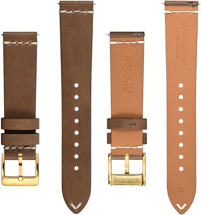 [Ayadoo] 腕時計バンド 18mm 20mm 22mmイタリアレザー時計バンド、Quick Releaseレトロレザー交換ベルト、ステンレススチール尾錠