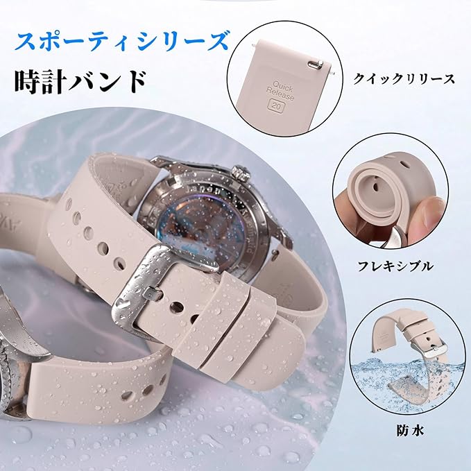 [Ayadoo] 18mm 19mm 20mm 21mm 22mmシリコーン時計バンド、スポーティシリーズ腕時計バンド、 Quick Release