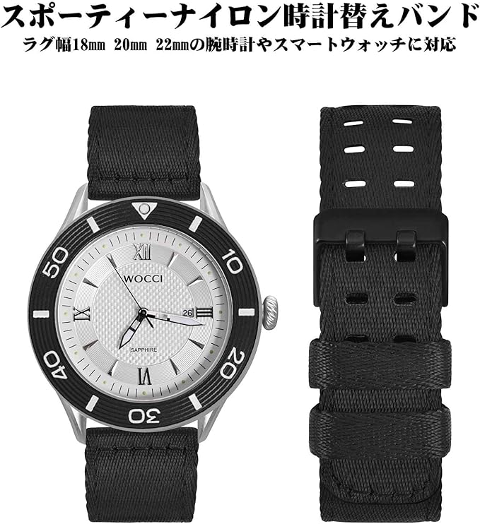 [WOCCI] 時計ベルト ナイロン 18mm 20mm 22mm 腕時計バンド ダブルホール2段ナイロンストラップ Quick Release