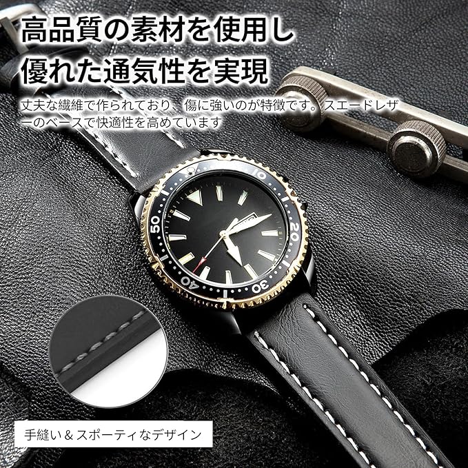 ヴィンテージスタイル: 厳選された最高級のクレイジーホースレザーは、革を曲げると自然にひび割れが生じます。時間の経過とともに自然な風合いが生まれますが、こうした単純な欠陥がどんな時計にも豊かな質感を加えます。