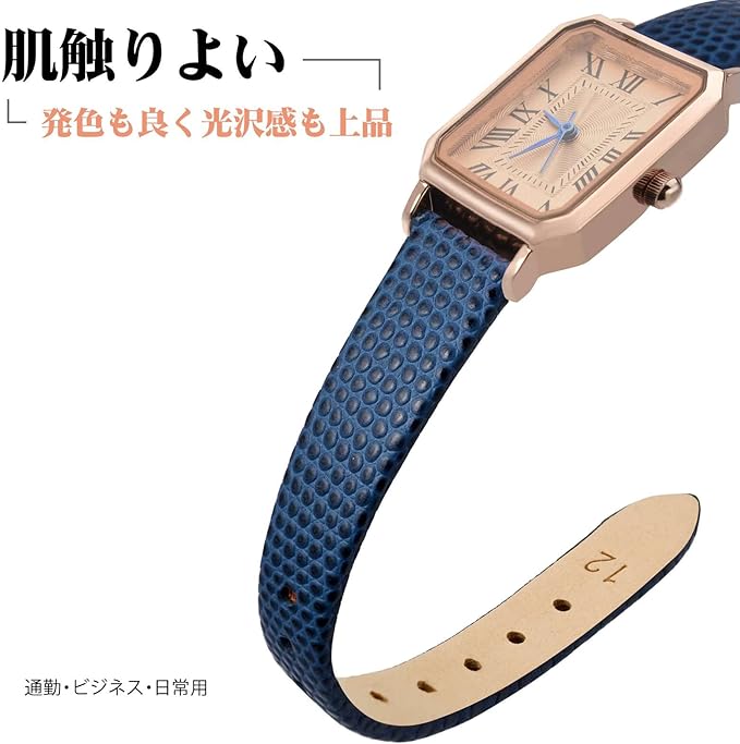 軽量でありながら丈夫で、洗練された細かく粒の揃ったウロコ模様、肌触りよい本革腕時計ベルトです。
