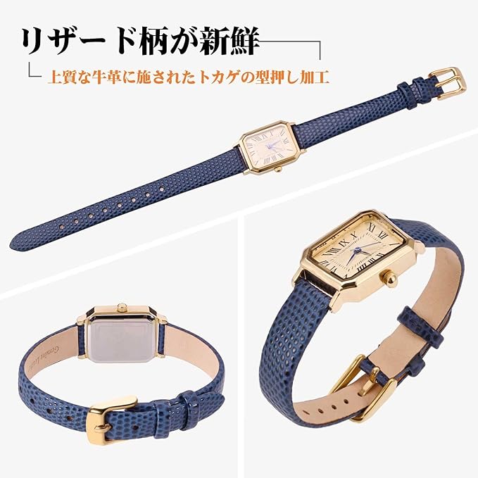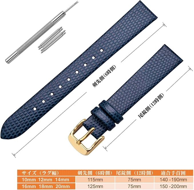 [ANNEFIT] 本革時計バンド 10mm/12mm/13mm/14mm/15mm/16mm/18mm/20mm/22mm リザード型押し腕時計ベルト 交換工具付き 替えバンド