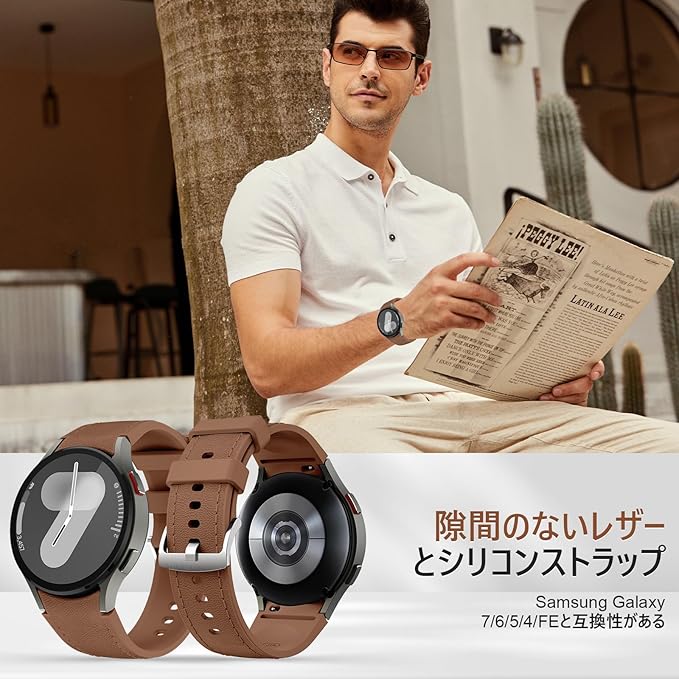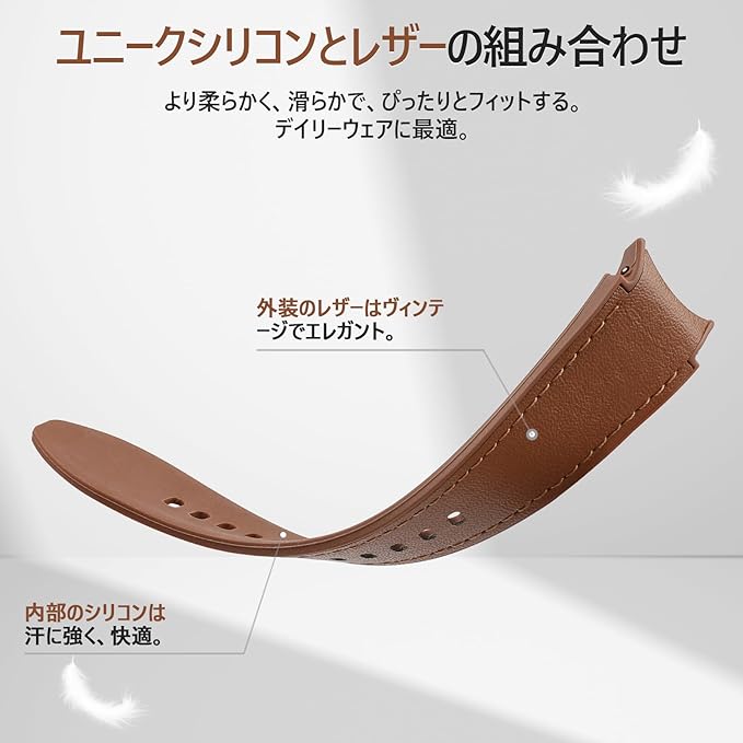 革の時計バンド適用するSamsung Galaxy Watch 7/6/5/4/FE 40mm 44mmに対応、隙間のない本革ストラップ対応Galaxy Watch6 Classic 43mm 47mm/Galaxy Watch5 Pro 45mm用のクイックリリース腕時計ベルト
