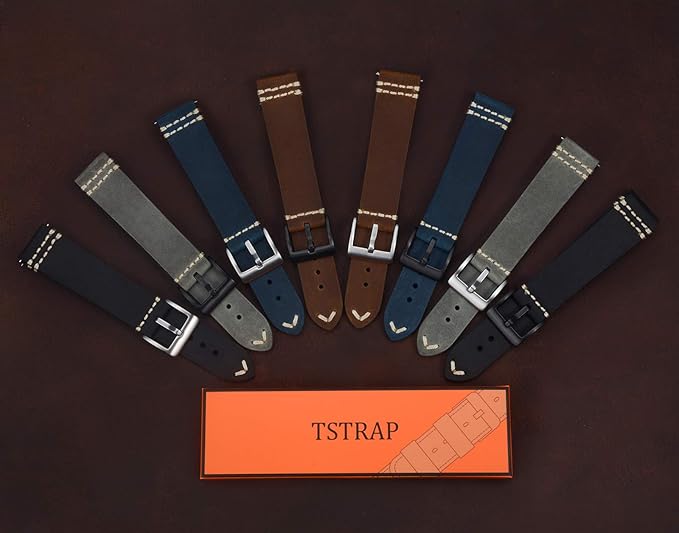 TStrap レザー 時計ベルト 時計バンド 18mm - 本革時計ベルト スマートウォッチ ベルト 交換 - メンズ 時計の替えベルト 時計べると - バックルとスライド式バネ棒付き - 19mm 20mm 21mm 22mm