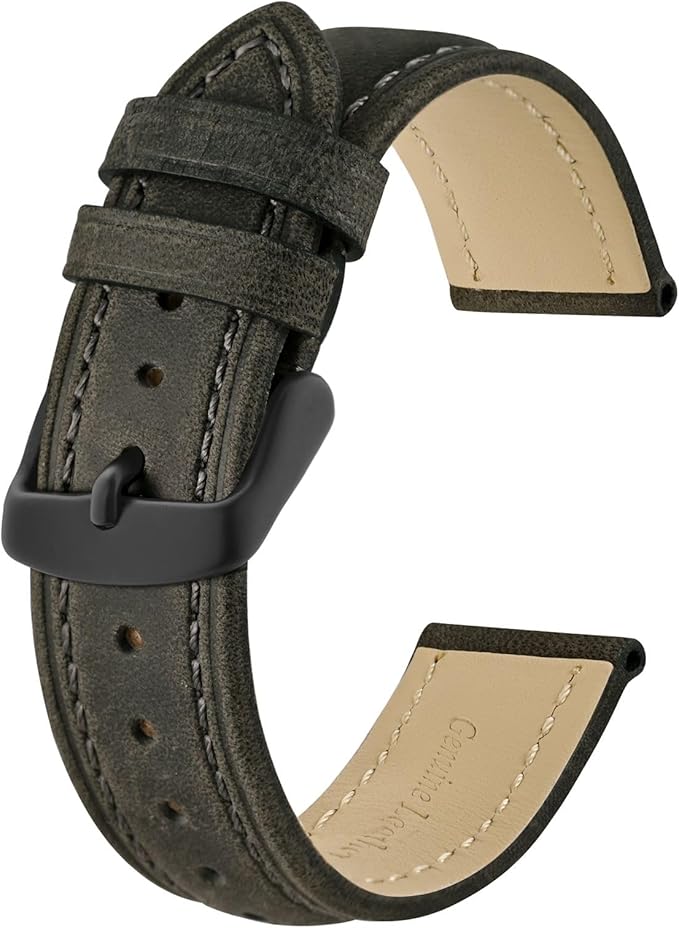 [BISONSTRAP] 腕時計バンド 14mm 15mm 16mm 17mm 18mm 19mm 20mm 21mm 22mm 23mm 24mm スエード 本革 時計ベルト ブラックバックル