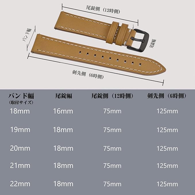 ラグ幅18mm 19mm 20mm 21mm 22mmの腕時計やスマートウォッチに適しますのでオーダーする前に腕時計のラグ幅をご確認ください。