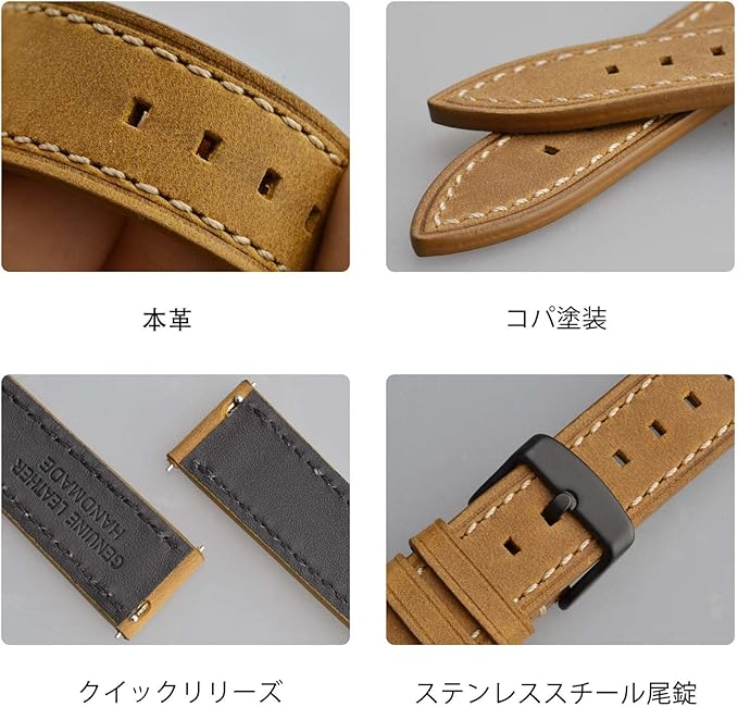 BISONSTRAP レザー時計バンド 18mm 19mm 20mm 21mm 22mm Quick Release ビジネススタイル本革腕時計ベルト