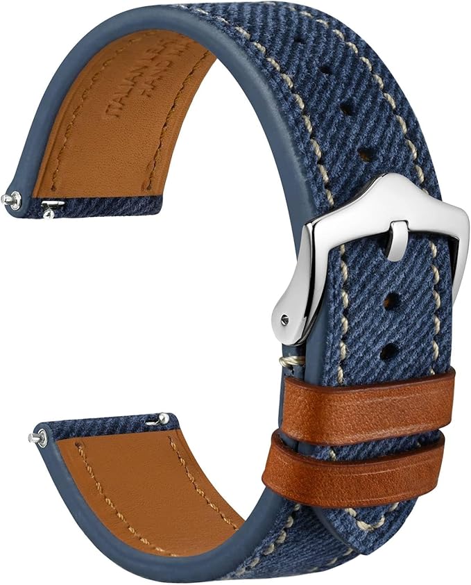 [WOCCI] 時計ベルト 本革 18mm 20mm 22mm 腕時計バンド デニムパターン イタリアンレザー替えベルト