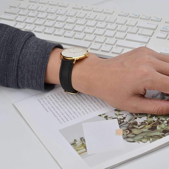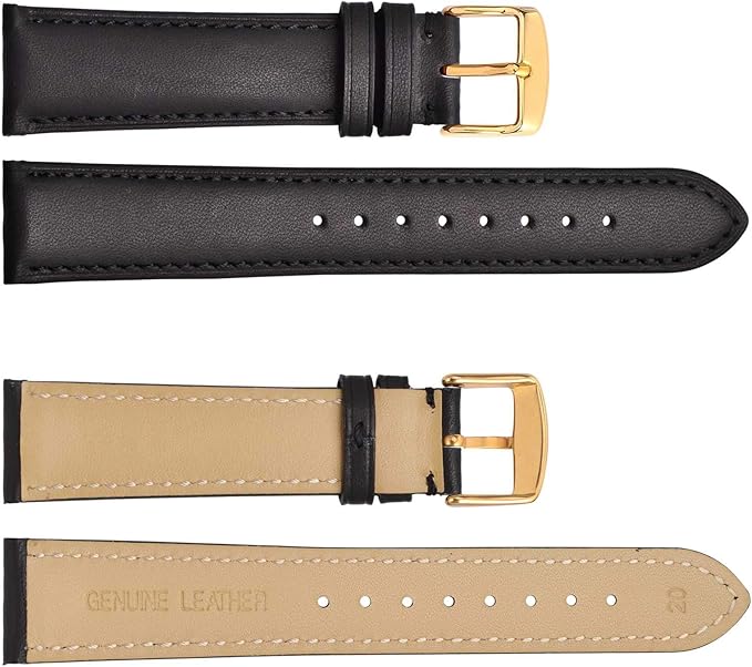 [WOCCI]時計ベルト24mm替えベルト ヴィンテージ 本革腕時計バンド 黒 ゴールドバックル