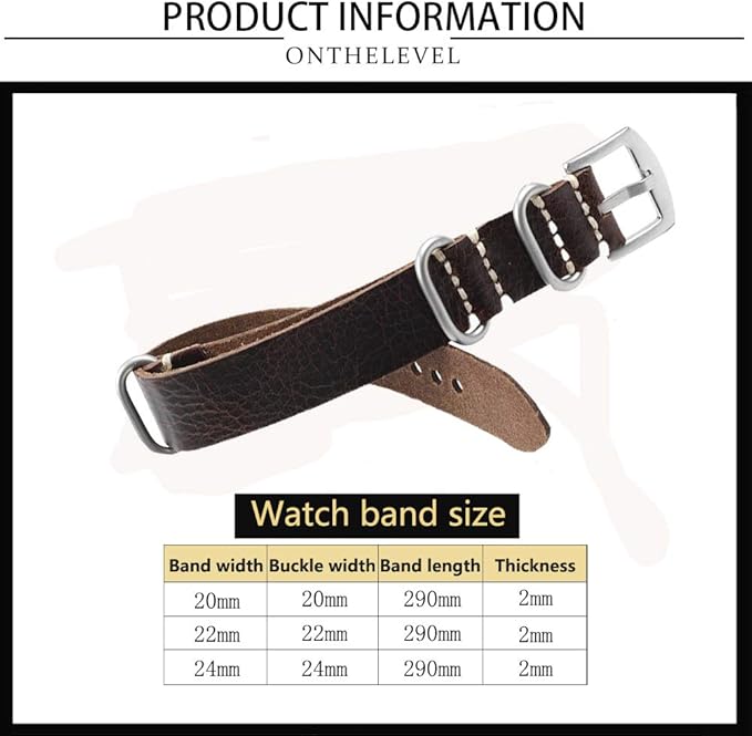 [Onthelevel] 時計ベルト 本革 Nato Zulu 20mm 22mm 24mm 交換用時計バンド ヴィンテージ G10 革時計バンド