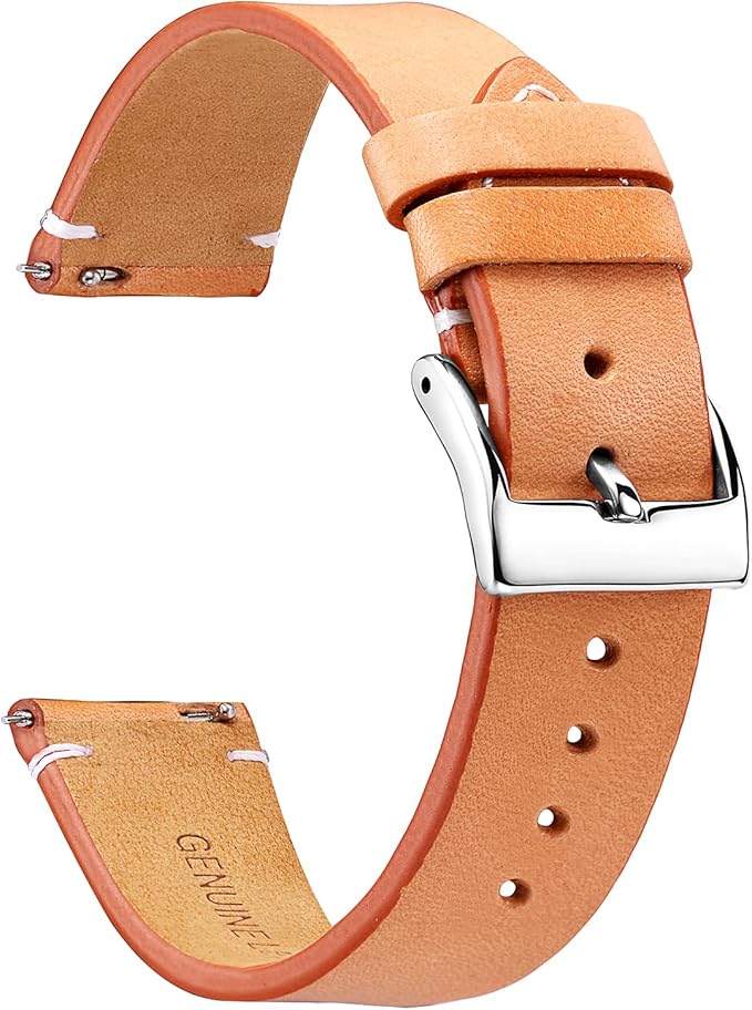 [BINLUN] 本革時計バンド クイックリリース レザー腕時計ベルト メンズ レディース 交換用ウォッチストラップ 男女兼用 12mm 14mm 16mm 18mm 20mm 22mm 24mm 4色(オレンジ/ブラック/ブラウン/ライトブラウン)