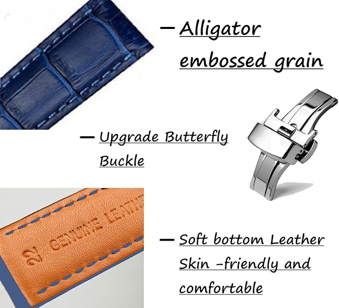[Moran] 本革時計バンドクイックリリースポリッシュ展開Dバックル、男性女性用,18mm-24mmカーフレザー交換用時計ストラップ、防水、防汗