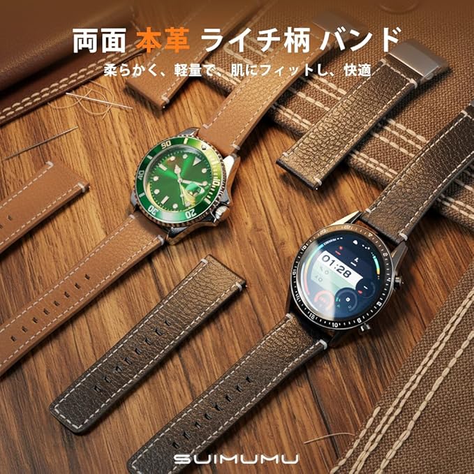 【対応モデル】SUIMUMU 22mm レザー時計バンドは、リュウズ幅 22mm の時計・スマートウォッチに全て対応します。購入前に自身のリュウズサイズを確認してください。