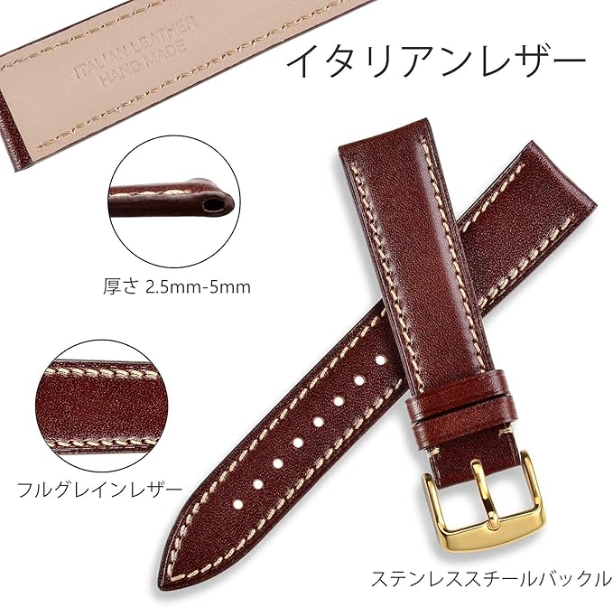 [WOCCI]本革時計ベルト 18mm 20mm 22mm イタリアンカーフレザー 腕時計交換バンド カジュアルスタイル