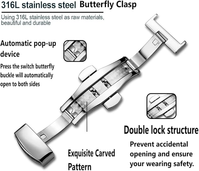 ⭐【Dバックル】:316Lステンレス鋼、抗アレルギー、精密研磨技術、美しい外観、耐久性、シンプルでエレガントな中空デバイス。 スイッチをダブルクリックすることで簡単に開くことができます。Dバックル最高の状態に調整。
