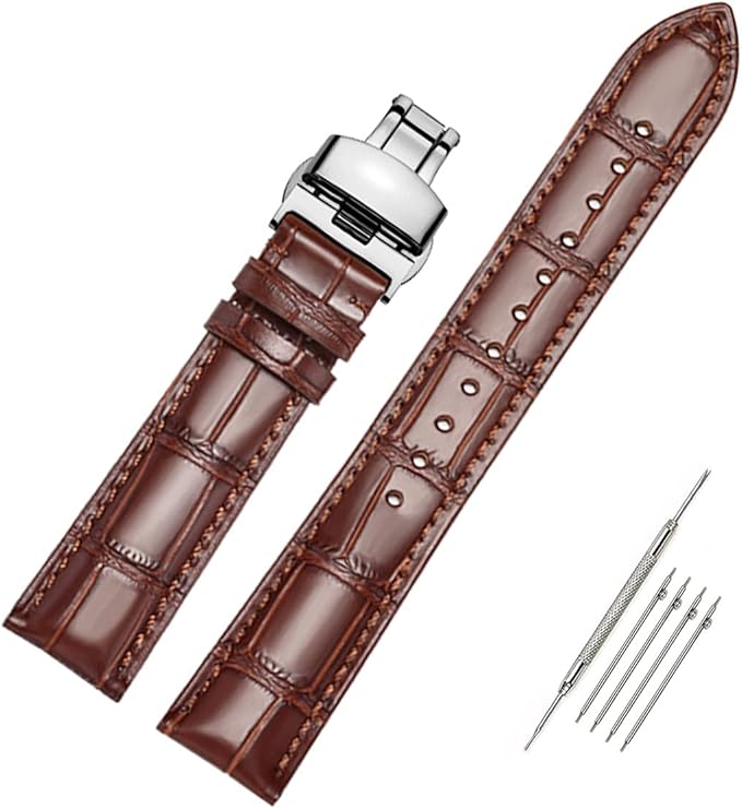 [Moran] 本革時計バンドクイックリリースポリッシュ展開Dバックル、男性女性用,18mm-24mmカーフレザー交換用時計ストラップ、防水、防汗