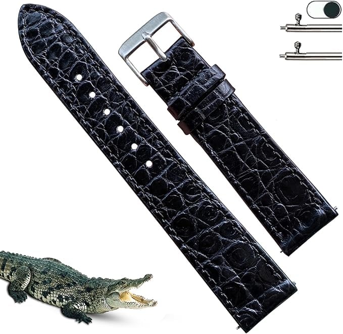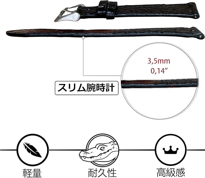 [vinacreations] クロコダイル腕時計ベルト ワニ交換用時計バンド トカゲ 細い帯 腕首バックル付きダチョウ革 手作りメンズ ハンドメイド