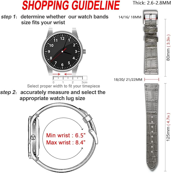 【留め具のサイズ】21mmと22mmの腕時計バンドは18mmバックル、19mmと20mmは16mmバックル、18mmの腕時計バンドは14mmバックルです。このクロコ腕時計ベルトは、伝統的な時計とスマートウォッチに適用することができます。