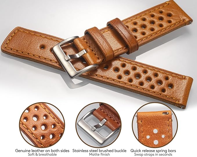 [hemsut h] 本革時計バンド 穴あきデザイン、柔らかく、曲げやすいイタリア製植物タンニンなめし革クイックリリースバンド