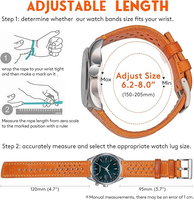 3.サイズ選び:正しいラグ幅のサイズを選び、購入前に時計のラグ幅を測ってください。また、メーカーや時計販売店のウェブサイトで、お使いの時計の幅を見つけることができます。