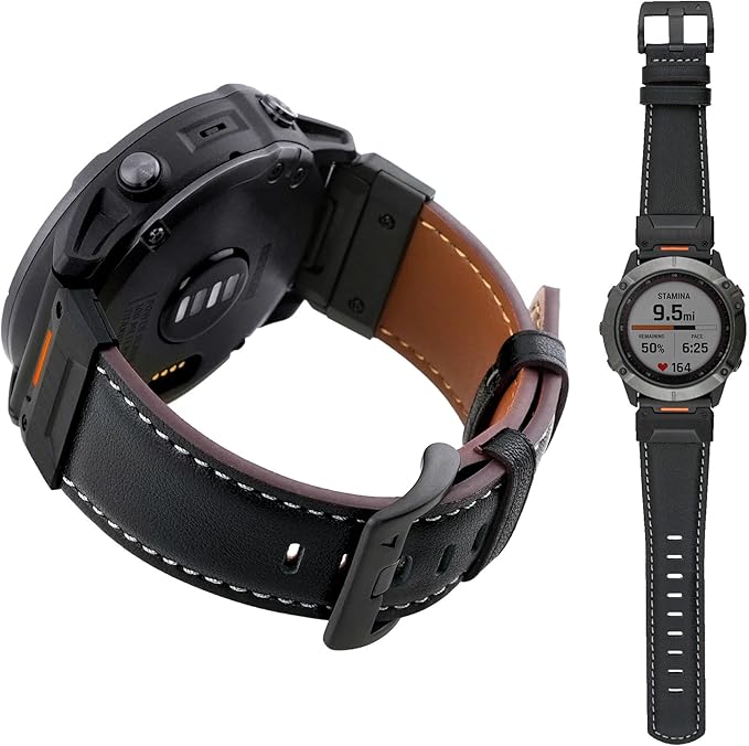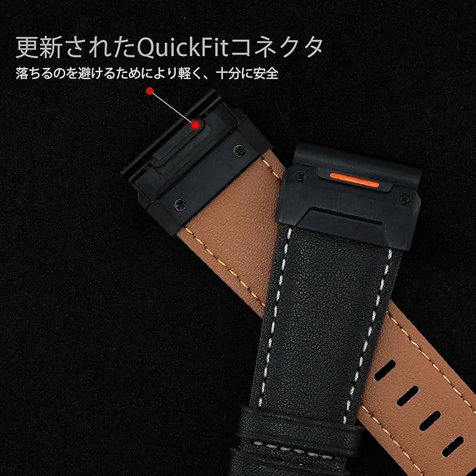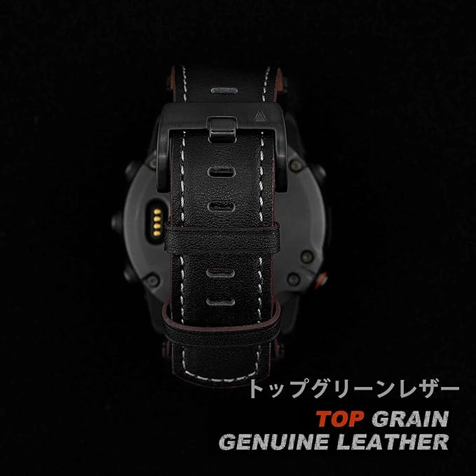 ▲ビジネススタイルと本革の質感, クラシックでレトロなデザインはGarmin Fenix 7/6/5シリーズと相性が良く、エレガントな仕上がりです。職場やフォーマルな場面にも適しています。高品質な本革は肌に優しく、通気性に優れ、快適な装着感を実現します。