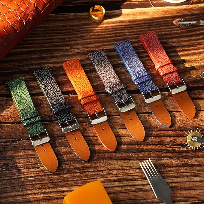 [vinacreations] ガルーシャ腕時計ベルト エイ皮交換用時計バンド 平らで薄いベルト スティングレイ革ベルト 腕首バックル付き 手作りメンズ ハンドメイド