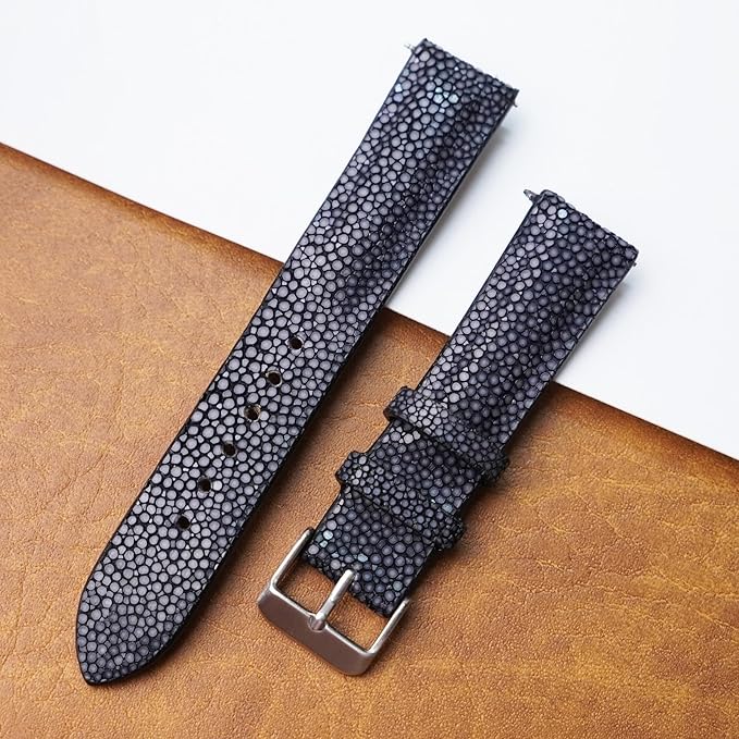 [vietnamcreations] 18mm ブラック エイ皮時計ベルトスティングレイ 腕時計 バンド ガルーシャベルト 交換用時計バンド 腕首バックル付き手作りメンズ 黒 DH-60-18MM