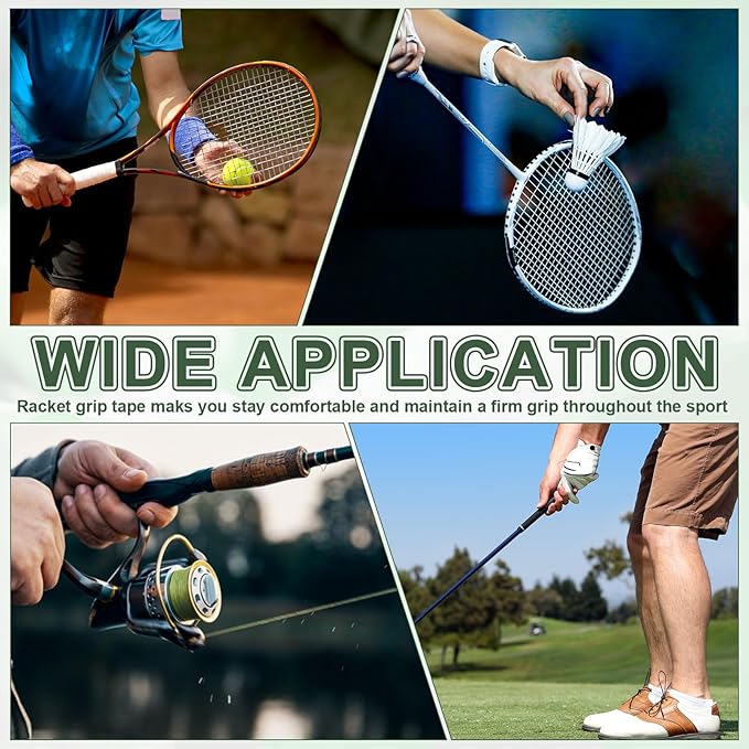 ラケットグリップテープは、テニス、バドミントン、ラケットボール、ピクルボール、自転車ハンドルバー、釣り竿に最適で、スポーツ中も快適に保ち、しっかりとしたグリップを維持します。
