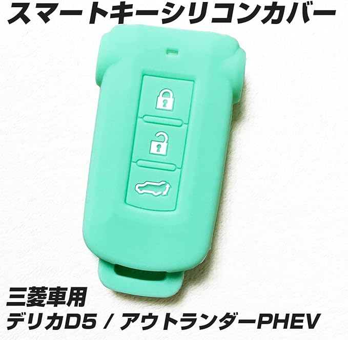 【IKT】(三菱車用) スマートキー用シリコンカバー 3ボタン エメラルドグリーン / デリカD5 / アウトランダーPHEV/など 専用設計でピッタリサイズ 傷防止 さらさらシリコン (ミツビシ MITSUBISHI車用)(MIS-003EGR)