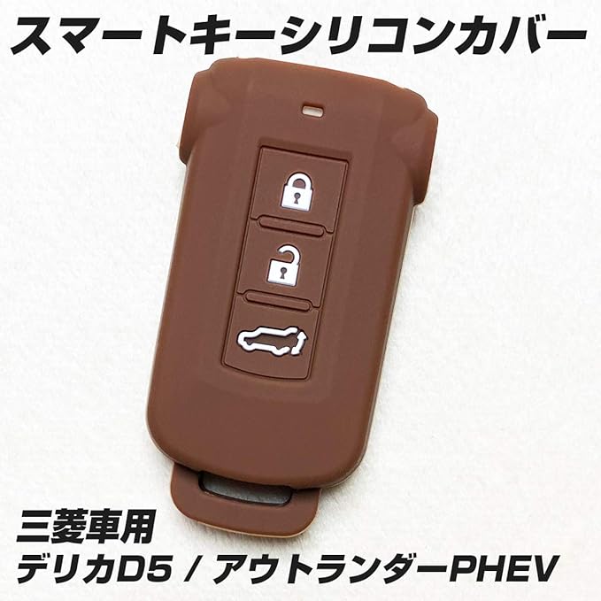 【IKT】(三菱車用) スマートキー用シリコンカバー 3ボタン ブラウン / デリカD5 / アウトランダーPHEV/など 専用設計でピッタリサイズ 傷防止 さらさらシリコン (ミツビシ MITSUBISHI車用)(MIS-003BR)